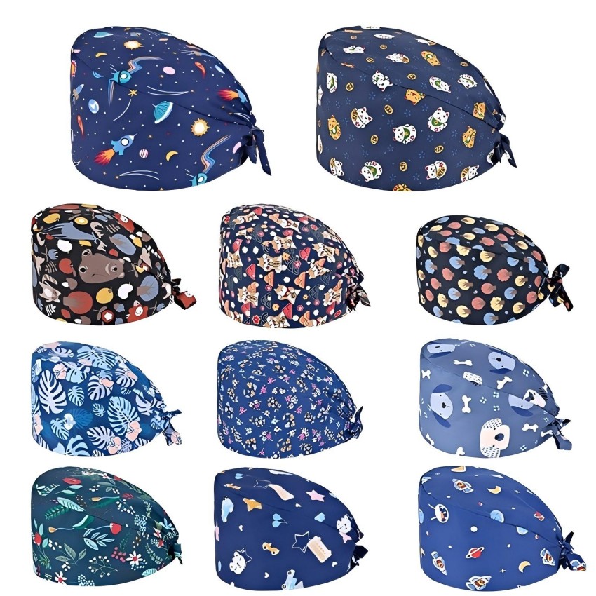 Choose from tie-back, elastic-fit, and buttoned caps (perfect for holding mask straps), plus printed styles that add a touch of personality. Each hat is washable and long-lasting, helping reduce waste and save on costs. We also offer custom options — add your logo, select colors, or create patterns to suit your team or facility.