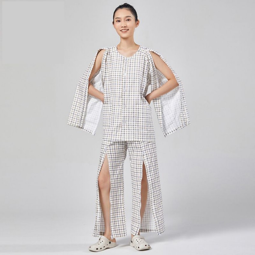 The patient friendly clothing design helps caregivers assist patients with minimal effort, especially during medical examinations or rehabilitation therapy.